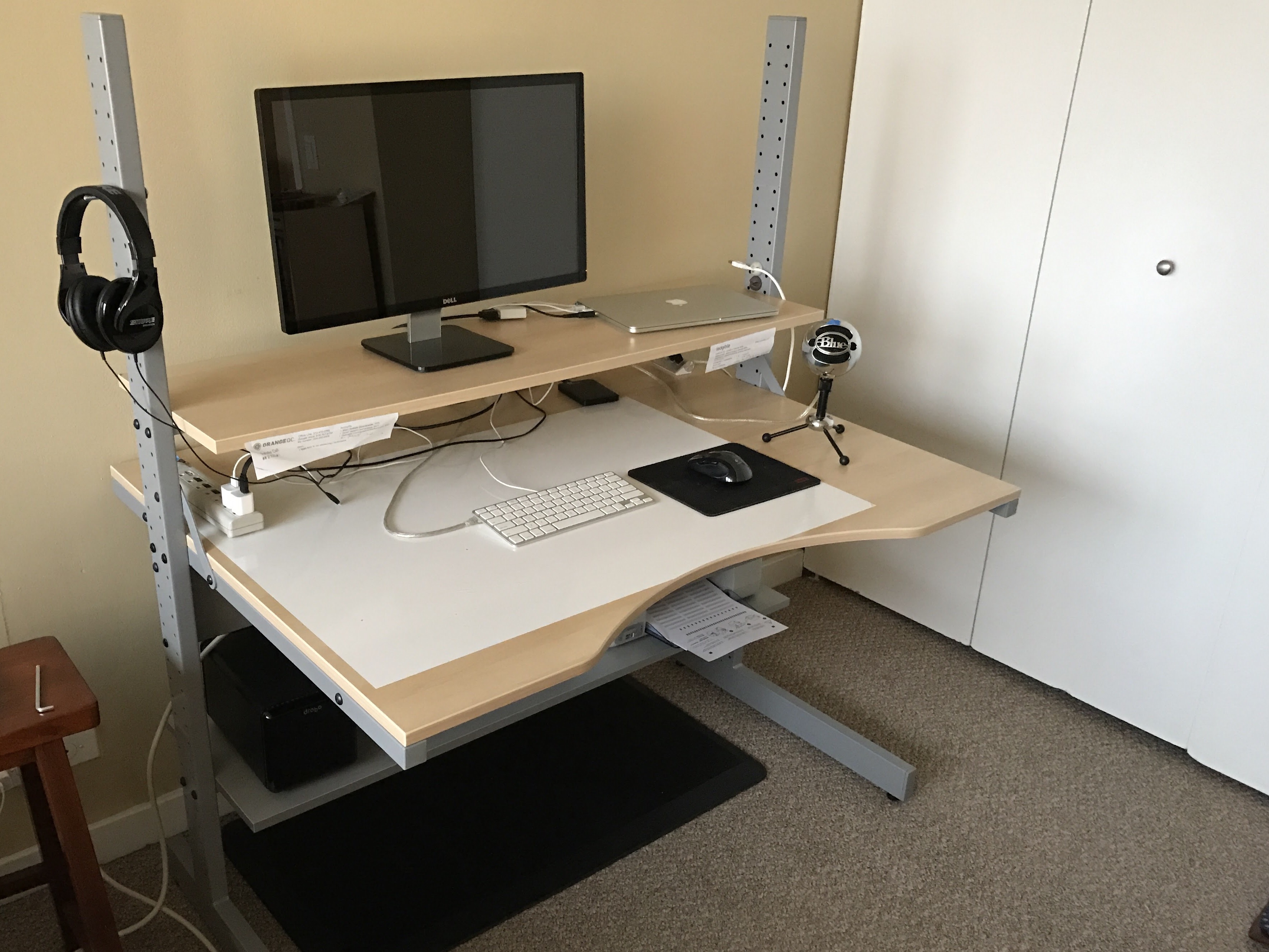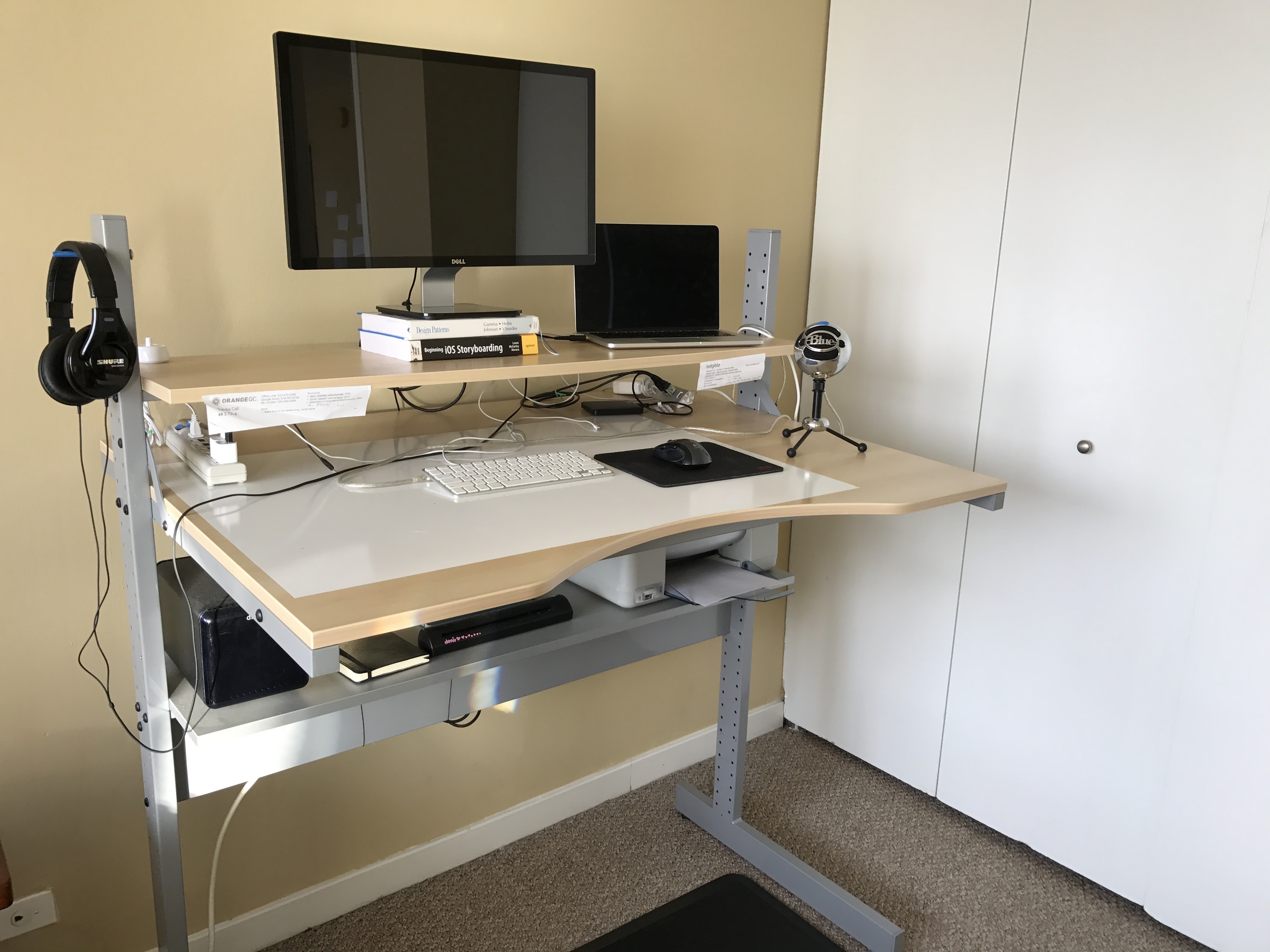 I heard everyone's enjoyment about standing desks. How it helped with various pains and made people feel healthier. I have an awesome IKEA desk which can be assembled in many ways, so when we moved back to Chicago I took the opportunity to assemble it into a standing desk.